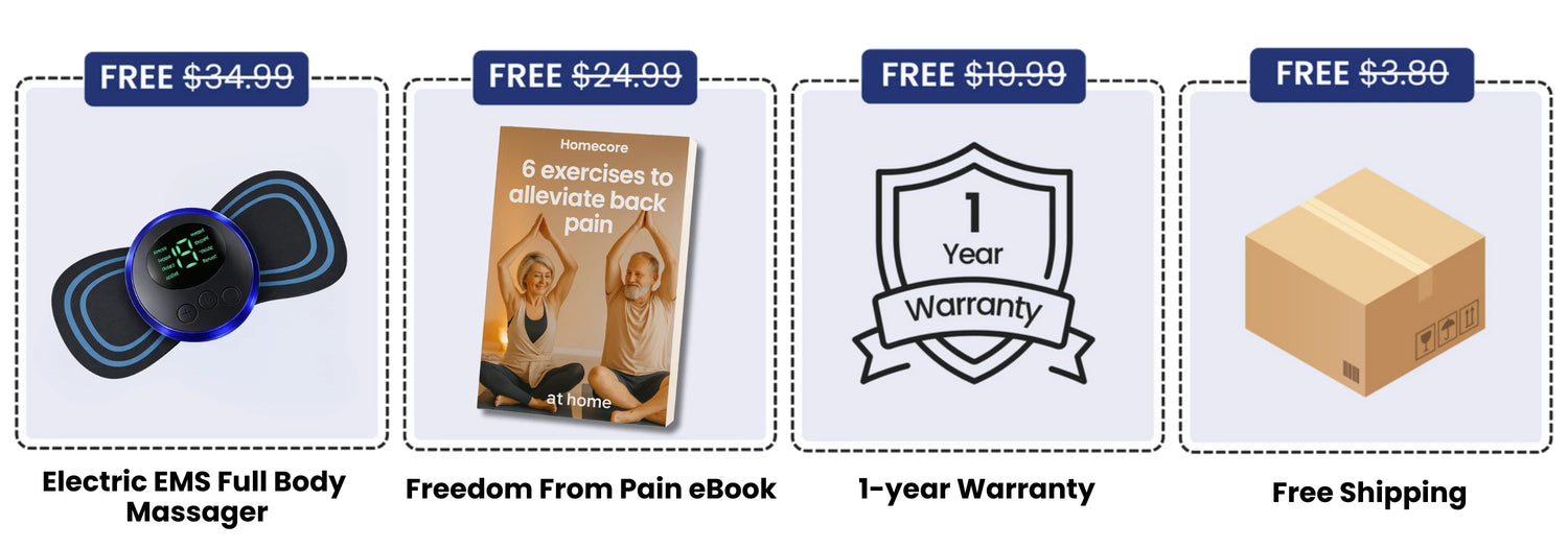 Usually sold separately for $19, our eBook includes 6 exercises to alleviate back pain at home, and comes free with all orders placed today.